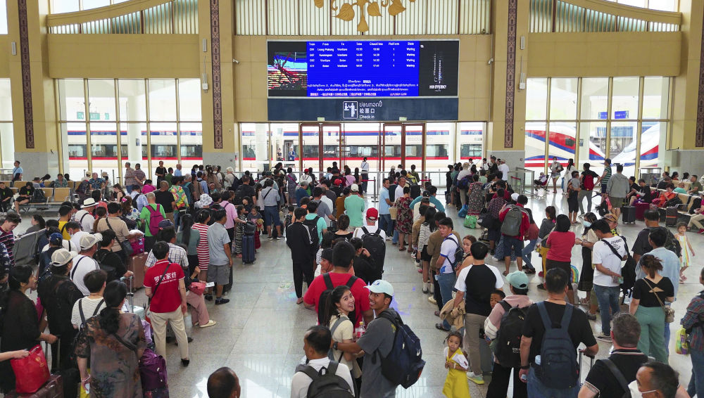 2024年4月12日,在中老鐵路老撾瑯勃拉邦站,旅客準備檢票乘車。新華社發(fā)(楊永全攝)