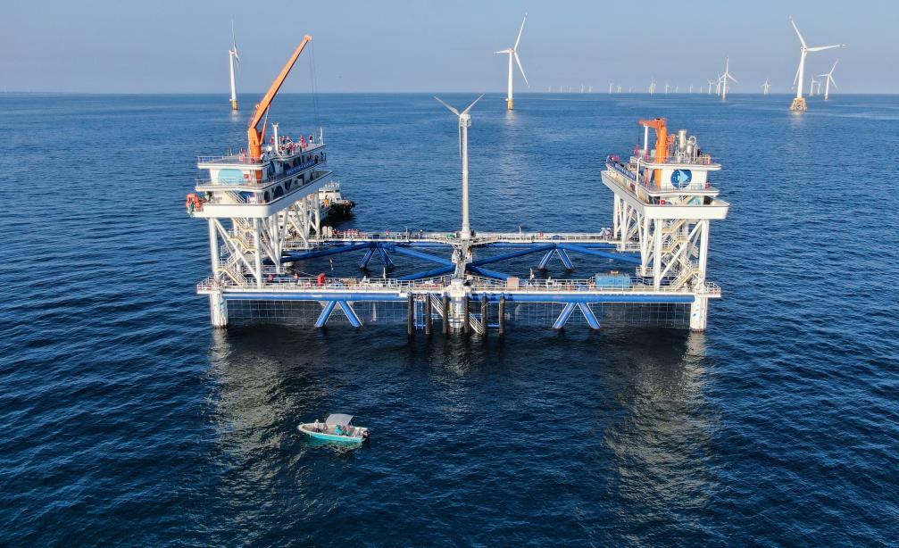 據(jù)了解,“伏羲一號”實現(xiàn)了“一邊海風(fēng)發(fā)電、一邊深海養(yǎng)魚”,建造過程中創(chuàng)新應(yīng)用了抗臺風(fēng)、防撞擊、強(qiáng)防腐等多種新技術(shù),可正面抗擊17級超強(qiáng)臺風(fēng),預(yù)計年產(chǎn)優(yōu)質(zhì)海水魚類約900噸。