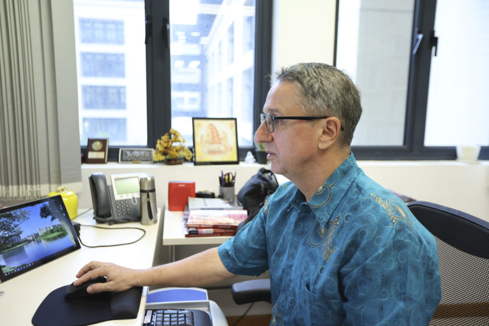 2024年11月14日,澳門大學(xué)社會(huì)科學(xué)學(xué)院副教授、來(lái)自美國(guó)的托德·萊爾·桑德爾(中文名申大德)在辦公室工作。新華社記者 梁家駿 攝