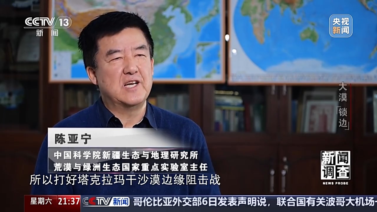 中國(guó)科學(xué)院新疆生態(tài)與地理研究所荒漠與綠洲生態(tài)國(guó)家重點(diǎn)實(shí)驗(yàn)室主任 陳亞寧:和田地區(qū)大概就是256萬(wàn)人,由于人均耕地面積少,經(jīng)濟(jì)發(fā)展相對(duì)也滯后。也是脫貧攻堅(jiān)成果鞏固和拓展難度最大的一個(gè)區(qū)域,所以在打好塔克拉瑪干沙漠邊緣阻擊戰(zhàn),對(duì)和田地區(qū)的經(jīng)濟(jì)社會(huì)發(fā)展、農(nóng)民增收是有著重要意義的。我們帶著隊(duì)伍進(jìn)行了將近兩個(gè)多月的實(shí)體調(diào)研,那我們調(diào)查什么呢?第一這里的地理環(huán)境、自然生態(tài)條件、水資源情況,同時(shí)我們也收集到他們當(dāng)?shù)剡@么多年防沙治沙的一些成功經(jīng)驗(yàn)和教訓(xùn),我們也進(jìn)行了訪談,結(jié)果我們就提出了一種從不同生態(tài)條件、不同沙害和不同水源條件下如何防沙治沙,實(shí)現(xiàn)沙漠鎖邊等一些建議、措施和總體規(guī)劃。