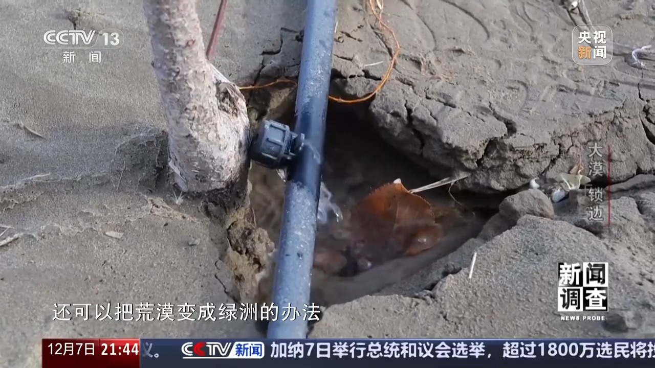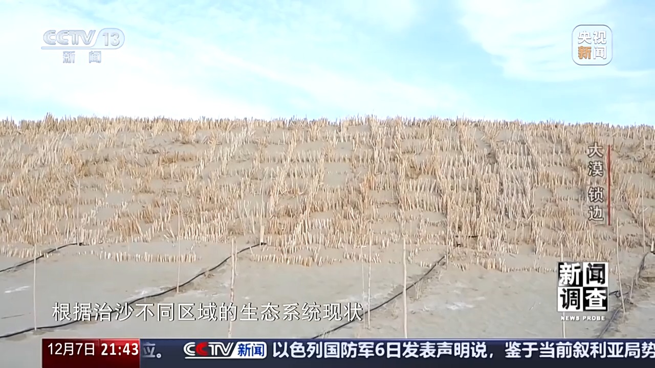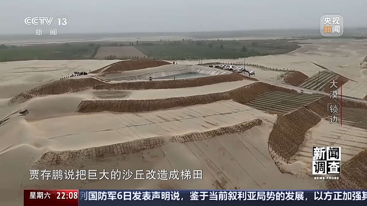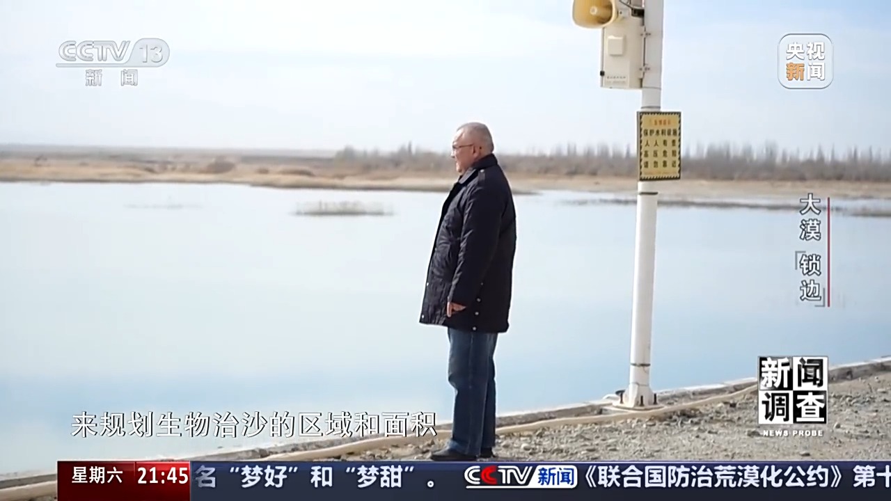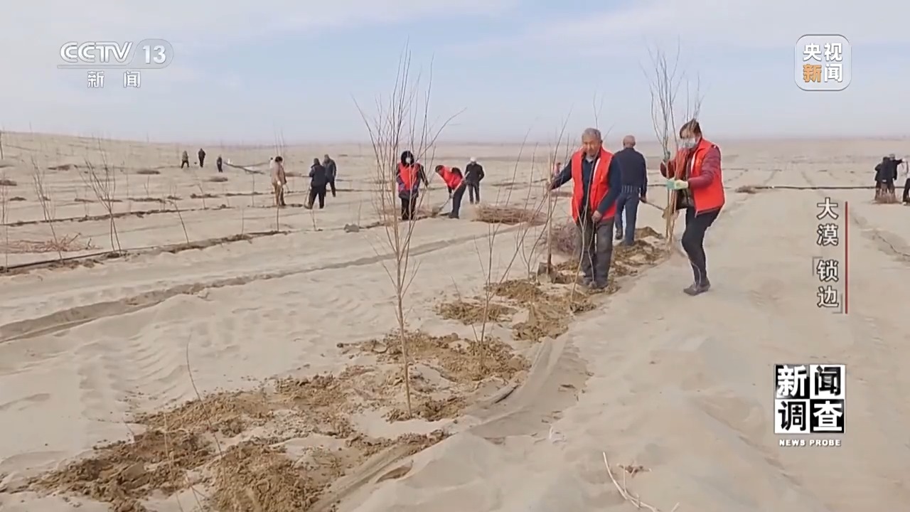新疆于田縣林業(yè)和草原局黨組書記、副局長(zhǎng) 賈存鵬:首先我們要到實(shí)地去勘測(cè),只要能有水的,我們?nèi)渴巧镏紊?,沒水的地方是草方格和高立式沙障治沙。