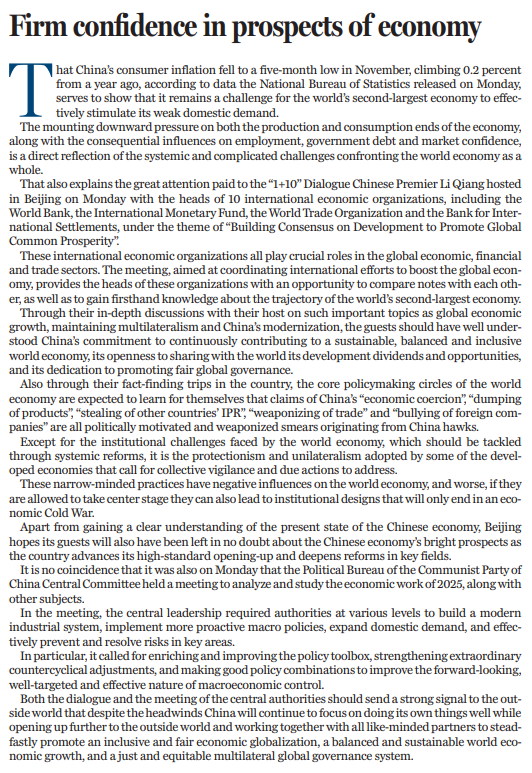 “1+10”對話的同一天,中共中央政治局12月9日召開會議,分析研究2025年經(jīng)濟(jì)工作及其他議題。