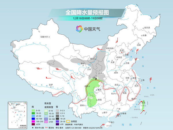 中央氣象臺(tái)預(yù)計(jì),今天,內(nèi)蒙古西部、新疆南疆山區(qū)、青海北部和西部、甘肅河西和東部、寧夏、陜西西部和南部、山東半島等地部分地區(qū)有小雪或雨夾雪,其中,甘肅東南部、陜西西南部等地部分地區(qū)有中到大雪。四川盆地、貴州西部、云南東北部及臺(tái)灣島中東部等地部分地區(qū)有小雨,局地有中雨。