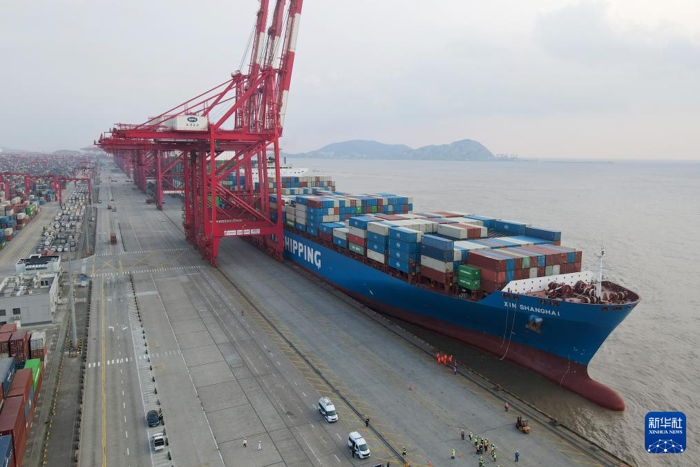12月18日,“新上海”輪靠泊上海洋山港碼頭(無人機(jī)照片)。新華社記者 方喆 攝