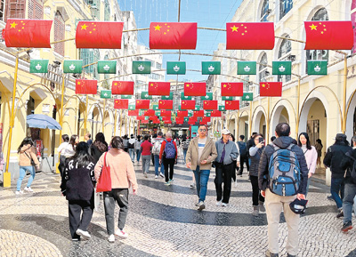 連日來,澳門街頭洋溢著熱烈喜慶的氛圍,慶祝澳門回歸祖國25周年。