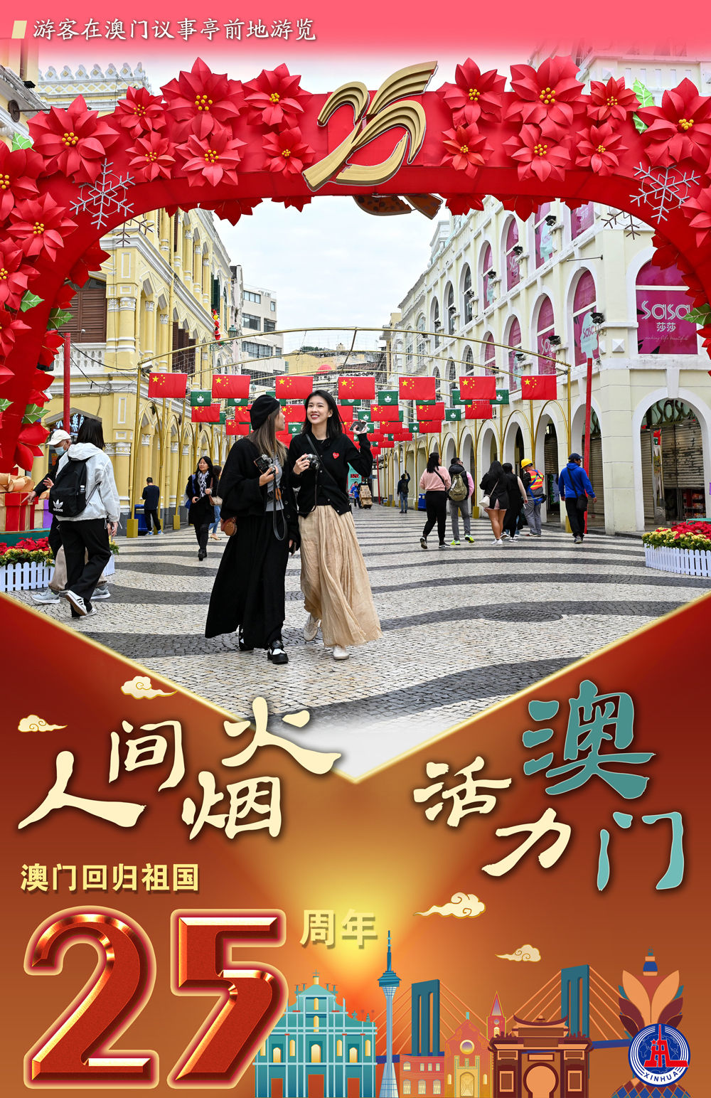 25年來,澳門經(jīng)濟(jì)快速增長、民生持續(xù)改善、社會和諧穩(wěn)定、國際影響力顯著提升。如今的澳門精彩紛呈,傳統(tǒng)融入現(xiàn)代,澳門的街道“充滿了活力與生機(jī)”。作為獨(dú)特的旅游目的地,澳門大型盛事、表演以及大大小小的節(jié)慶活動貫穿整年,活潑的“人間煙火氣”格外吸引游客,他們在這里品嘗全球美食、欣賞優(yōu)秀藝術(shù),一起體驗(yàn)“最是動聽凡人歌”的活力澳門。