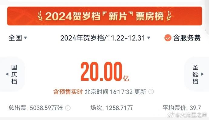 據(jù)網(wǎng)絡(luò)平臺數(shù)據(jù),截至12月22日16時17分,2024年賀歲檔(11月22日—12月31日)檔期電影票房(含預(yù)售)突破20億。
