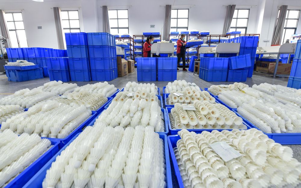 敦寨鎮(zhèn)的羽毛球,還衍生出了包括羽毛球拍等產(chǎn)品和包裝在內(nèi)的眾多下游企業(yè)。其中一家公司生產(chǎn)的碳纖維羽毛球拍,每月可達(dá)3萬支,大部分產(chǎn)品出口到東南亞等海外市場。