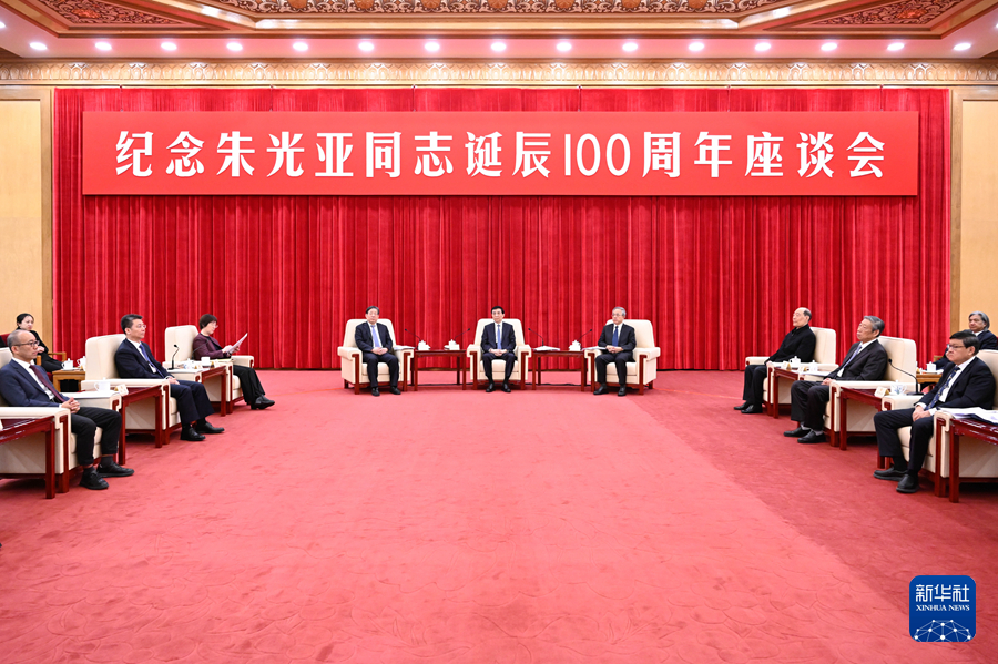 12月25日,紀(jì)念朱光亞同志誕辰100周年座談會(huì)在北京舉行。中共中央政治局常委、全國(guó)政協(xié)主席王滬寧出席座談會(huì),并在會(huì)前會(huì)見(jiàn)了朱光亞同志親屬。新華社記者 申宏 攝
