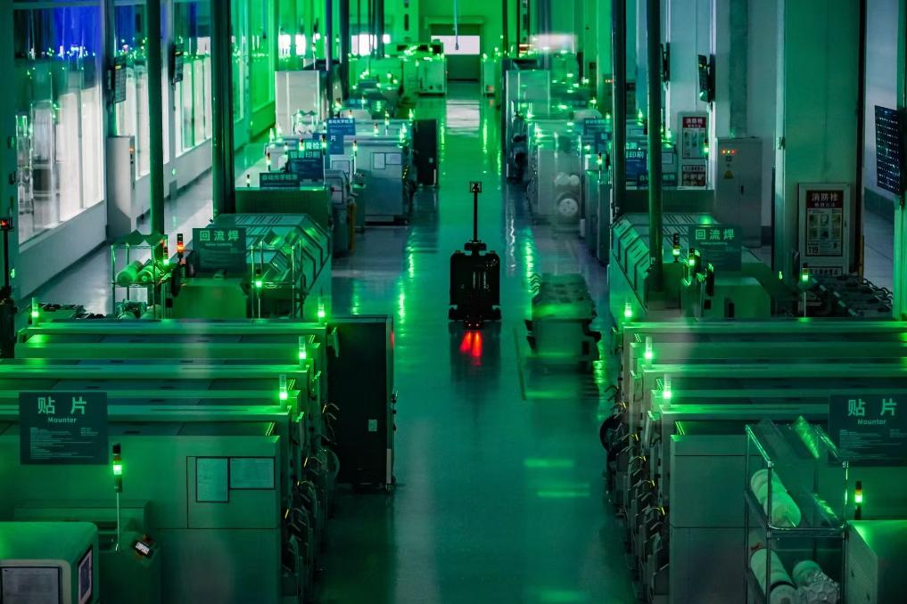 無數(shù)綠燈依次閃爍,少量工人巡檢其間……在這座達(dá)到業(yè)界標(biāo)桿水平的零碳智造工廠,“黑燈”模式下運(yùn)作的電腦主板生產(chǎn)線繁忙卻有序?!拔覀兓凇恕叀啤W(wǎng)—智’新IT技術(shù)架構(gòu),使生產(chǎn)效率提升200%。猜猜看,現(xiàn)在下線一塊主板、一臺筆記本能有多快?”聯(lián)想天津工廠廠長于小建給出的答案是,“9秒!”