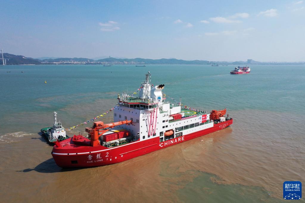 2024年11月1日,執(zhí)行中國第41次南極考察任務的“雪龍”號和“雪龍2”號船從廣州南沙國際郵輪母港碼頭出發(fā)。新華社記者 黃國保 攝
