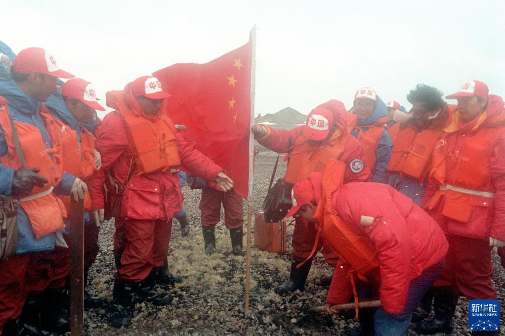 1984年12月30日,中國南極考察隊登陸成功后,在南極洲插上第一面五星紅旗。新華社記者 朱幼棣 攝