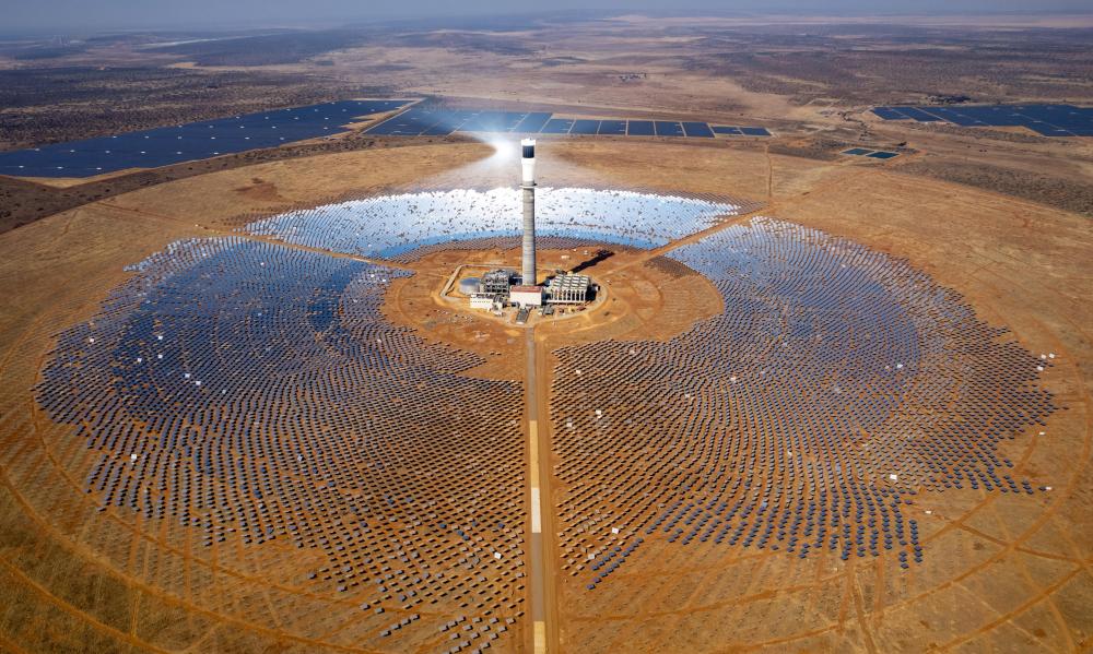 這是2024年8月20日在南非北開(kāi)普省拍攝的南非紅石100兆瓦塔式熔鹽光熱電站項(xiàng)目(無(wú)人機(jī)照片)。新華社記者 張譽(yù)東 攝