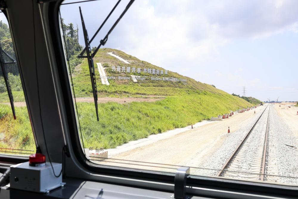 2024年5月6日,在馬來(lái)西亞彭亨州馬東鐵項(xiàng)目沿途的山坡上,兩行中文和馬來(lái)文大字“共商共建共享,共創(chuàng)美好未來(lái)”映入眼簾。新華社記者 程一恒 攝