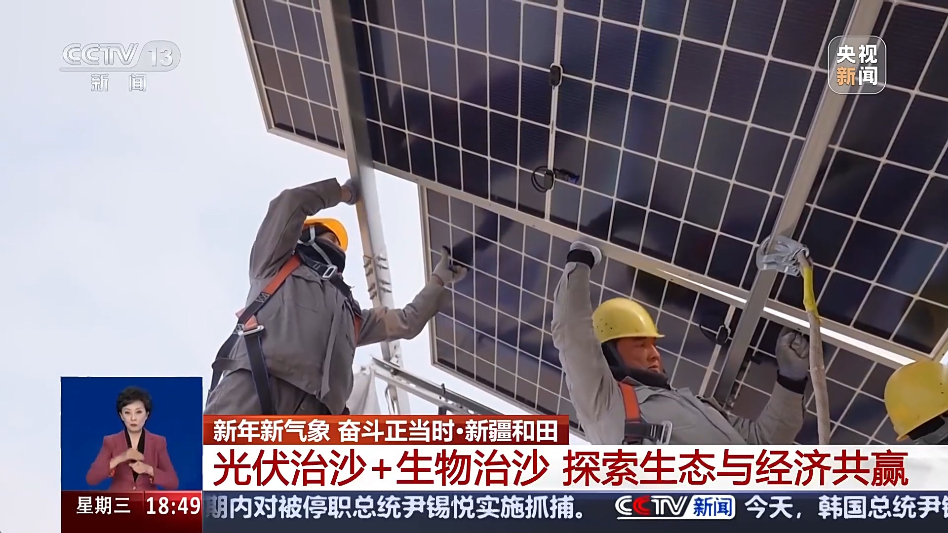 除了為生物治沙作準(zhǔn)備,塔克拉瑪干沙漠中還有不少光伏項(xiàng)目正在建設(shè),工人們加緊鋪設(shè)光伏板,到春天,光伏板下還會種上苜蓿、狼尾草等固沙植物,這處包含光伏治沙、生物治沙的鎖邊工程拓寬項(xiàng)目,也將成為新疆探索生態(tài)治理與經(jīng)濟(jì)發(fā)展共贏的一個新模式。