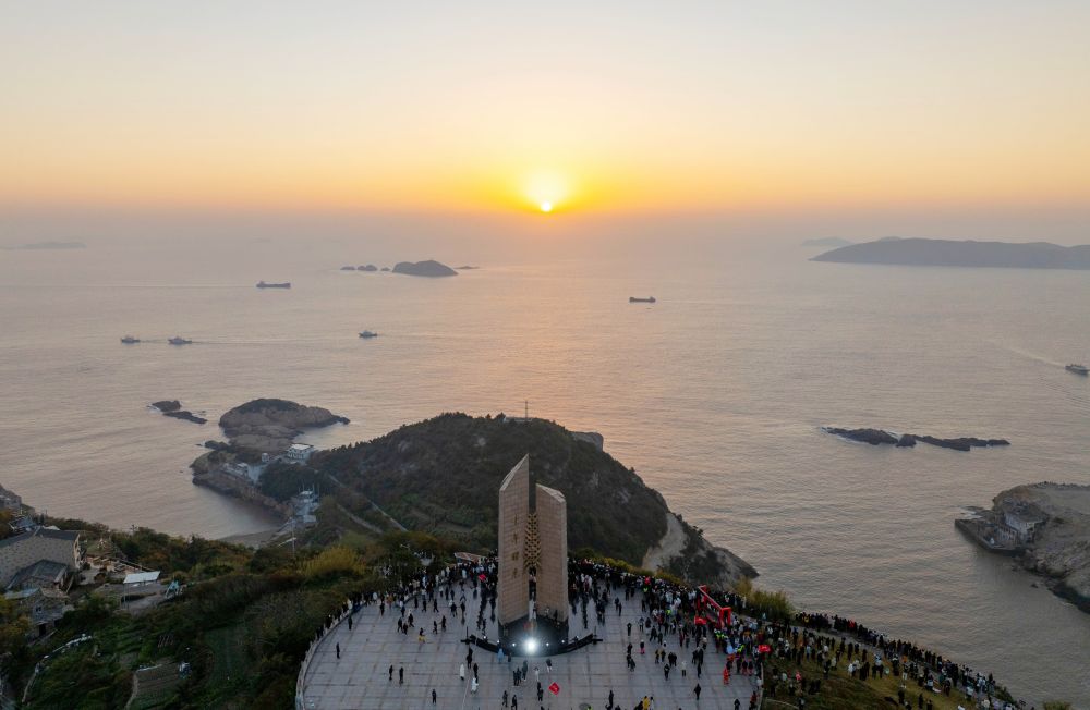 1月1日清晨,浙江溫嶺石塘鎮(zhèn)迎來日出。(徐偉杰 攝)
