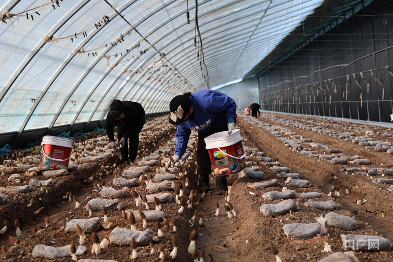 榆樹林村村民楊曉艷正小心翼翼地采摘、包裝鮮嫩的羊肚菌,臉上洋溢著喜悅。“每天在棚里工作6—9小時,每小時的工錢是15元,一年中大約7個月在這里務(wù)工,不用出村子就能有不錯的經(jīng)濟收入,還不耽誤種自己家里的地。一年收入2萬多塊錢,我心里覺得很溫暖,挺幸福的?!睏顣云G滿臉笑容地說道。