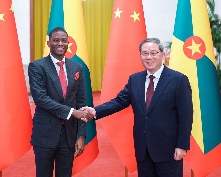 國務(wù)院總理李強(qiáng)1月13日在北京人民大會(huì)堂同來華進(jìn)行正式訪問的格林納達(dá)總理米切爾舉行會(huì)談。