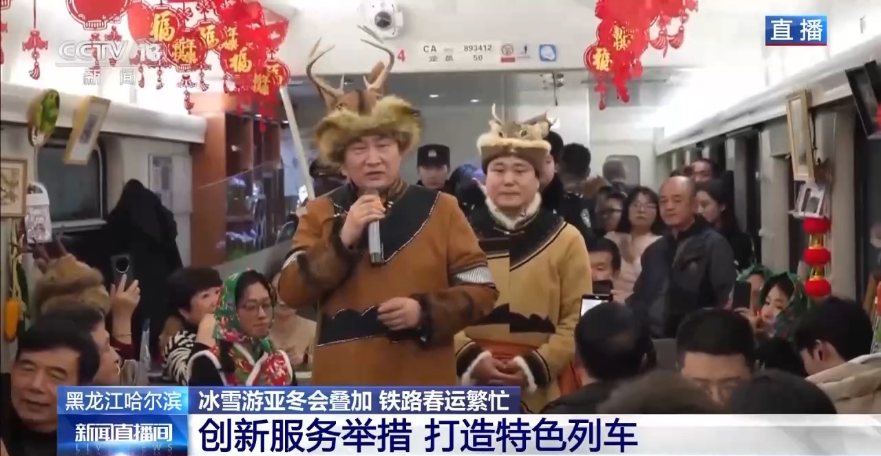 春運(yùn)期間還會(huì)繼續(xù)開行非遺列車,比如在哈爾濱開往漠河的列車上,就會(huì)邀請鄂倫春族非遺傳承人為游客展示刺繡、面塑、樺皮畫等非遺內(nèi)容。讓游客在暢游冰雪的同時(shí),感受“非遺春節(jié)”。