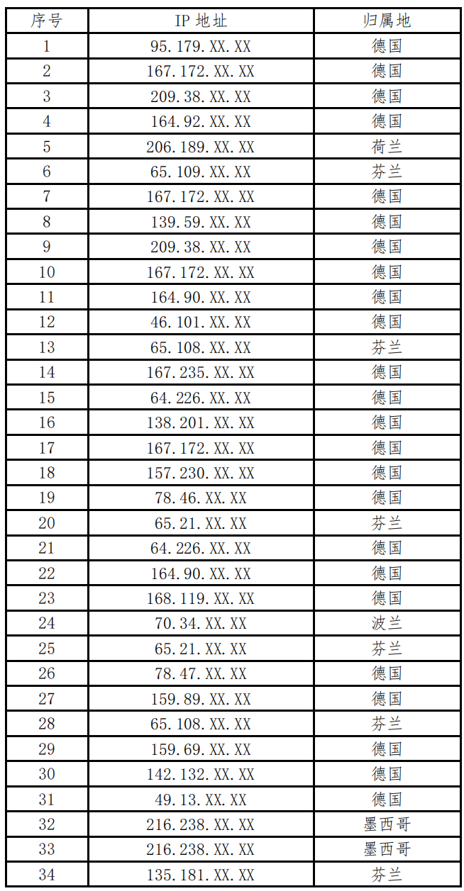 2023年5月至2023年10月,攻擊者發(fā)起了30余次網絡攻擊,攻擊者使用的境外跳板IP基本不重復,反映出其高度的反溯源意識和豐富的攻擊資源儲備。