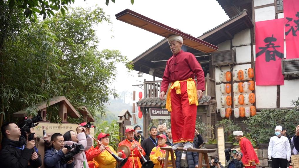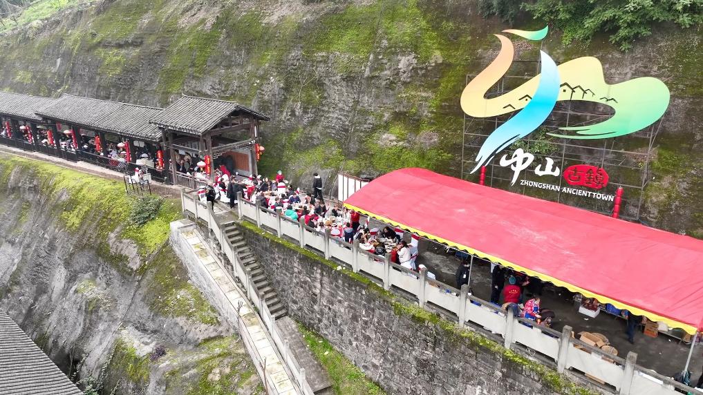 1月18日,重慶江津區(qū)第二十屆中山古鎮(zhèn)“千米長(zhǎng)宴”非遺民俗文化消費(fèi)節(jié)正式啟幕,吸引3萬(wàn)余名游客前來(lái)逛老街、賞非遺、品美食、憶鄉(xiāng)愁,沉浸式體驗(yàn)傳統(tǒng)民俗盛宴的魅力。