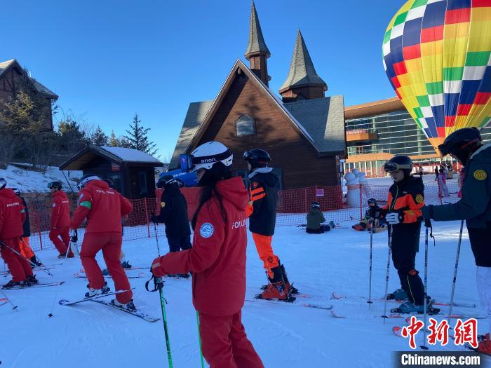 正值2024至2025雪季期間,當(dāng)日下午,一行人來到富龍滑雪場體驗滑雪??紤]多數(shù)人是“首滑”,當(dāng)?shù)匕才帕藢I(yè)教練教授雙板滑雪入門知識。