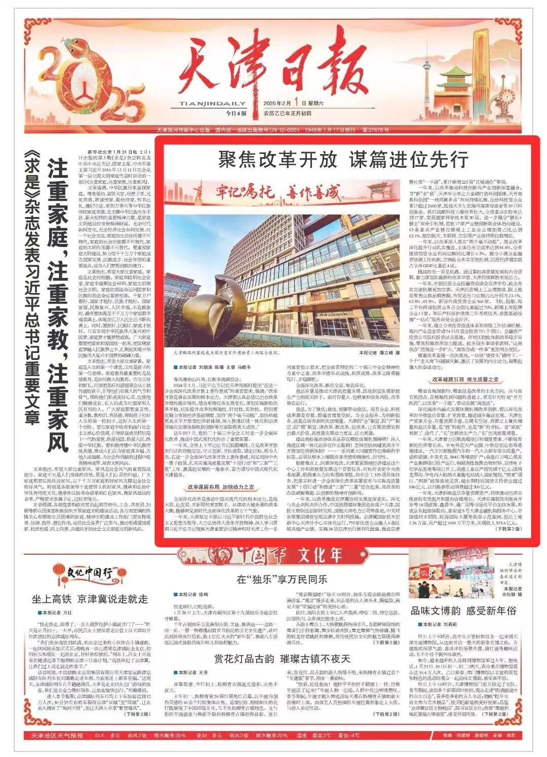 2024年2月,習(xí)近平總書記在天津視察時(shí)提出“在進(jìn)一步全面深化改革開放上善作善成”的重要要求,強(qiáng)調(diào):“改革開放是事業(yè)發(fā)展的根本動(dòng)力。天津要認(rèn)真總結(jié)已出臺(tái)改革舉措的落實(shí)情況,結(jié)合形勢(shì)任務(wù)發(fā)展變化,謀劃實(shí)施新的改革舉措,切實(shí)提升改革的精準(zhǔn)性、針對(duì)性、實(shí)效性。特別要在健全市場(chǎng)經(jīng)濟(jì)基礎(chǔ)制度、堅(jiān)持‘兩個(gè)毫不動(dòng)搖’、加快構(gòu)建更高水平開放型經(jīng)濟(jì)新體制、深入推進(jìn)區(qū)域一體化和京津同城化發(fā)展體制機(jī)制創(chuàng)新等方面取得更大成效?!?/p>