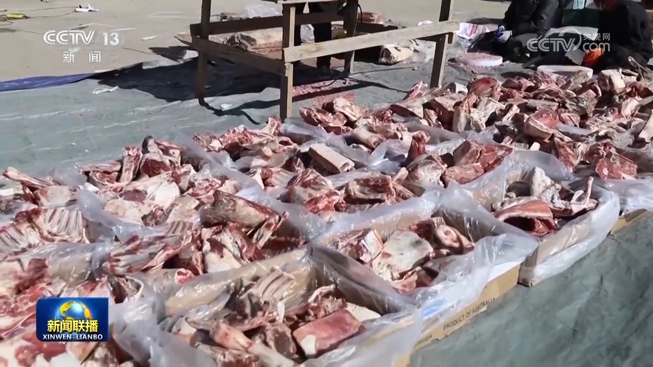 春節(jié)前夕,嘎旦村村委會(huì)的小院中,駐村工作隊(duì)長(zhǎng)、第一書記吳奇洵和村干部一起,給大家分發(fā)剛剛從鄉(xiāng)政府領(lǐng)來的牛羊肉。