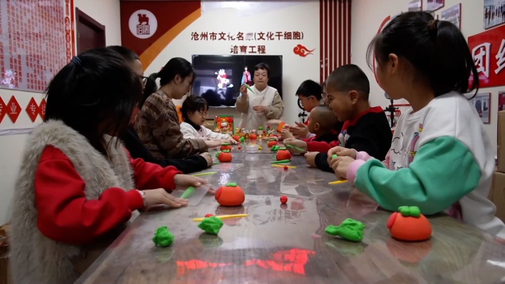 春節(jié)期間,在河北省滄州市新華區(qū)文化名家工作室,非物質(zhì)文化遺產(chǎn)代表性傳承人張英英為附近居民傳授捏面人技藝。