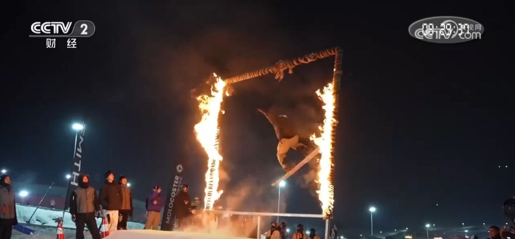 春節(jié)期間,阿勒泰游客數(shù)量突破新高。大年初四一天,將軍山滑雪場接待游客量就突破1.8 萬人次。雪友們白天暢滑粉雪,晚上還能體驗刺激的滑雪穿火圈,從雪道上腳踏雪板快速滑下,一躍而起,穿過燃燒的火圈。