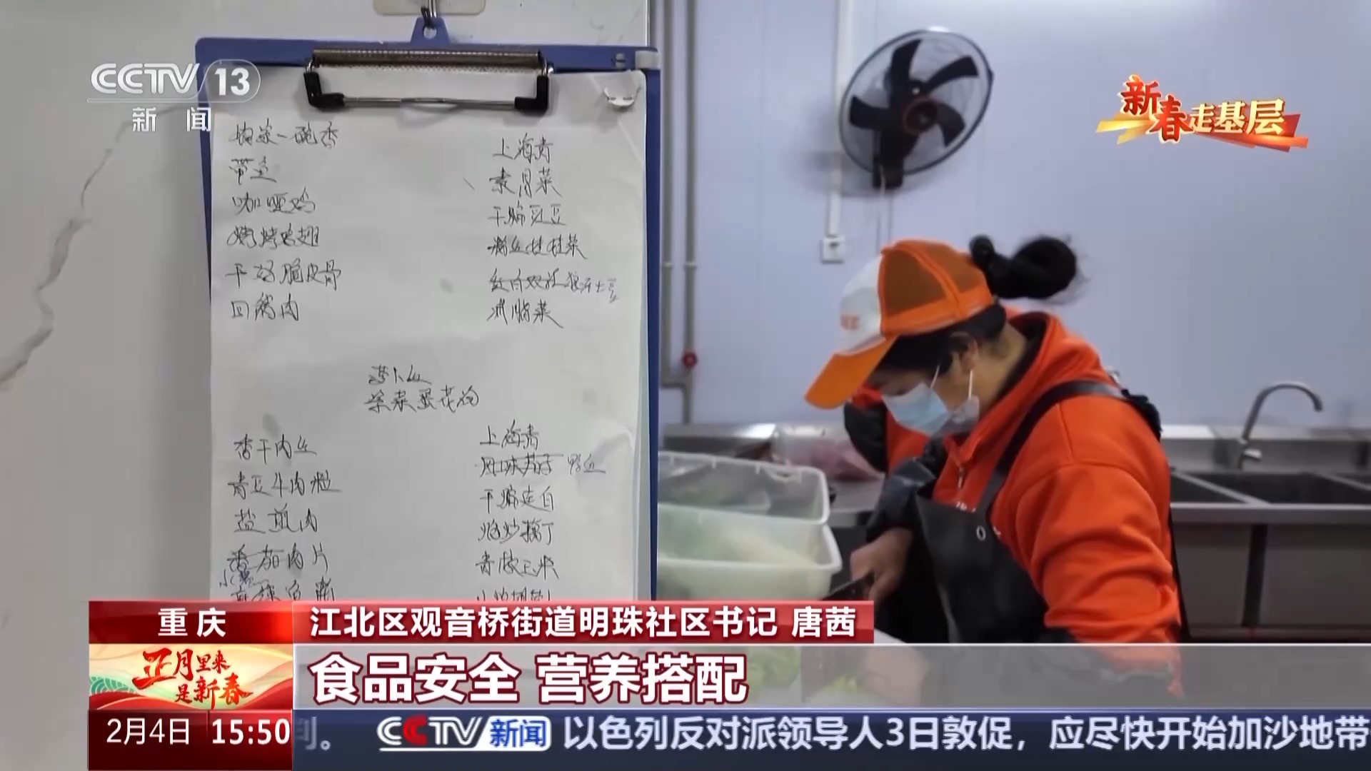 江北區(qū)觀音橋街道明珠社區(qū)書記 唐茜:要解決一個能夠辦食堂的一個地方,這是一個硬件上的問題。第二個就是誰來辦,首先我們提出的第一個就是要能夠滿足咱們這邊老人對高品質(zhì)生活的要求。食品安全、營養(yǎng)搭配、健康我們要排在第一。既然要做我們就要做得好,要做到老人的心坎上去。