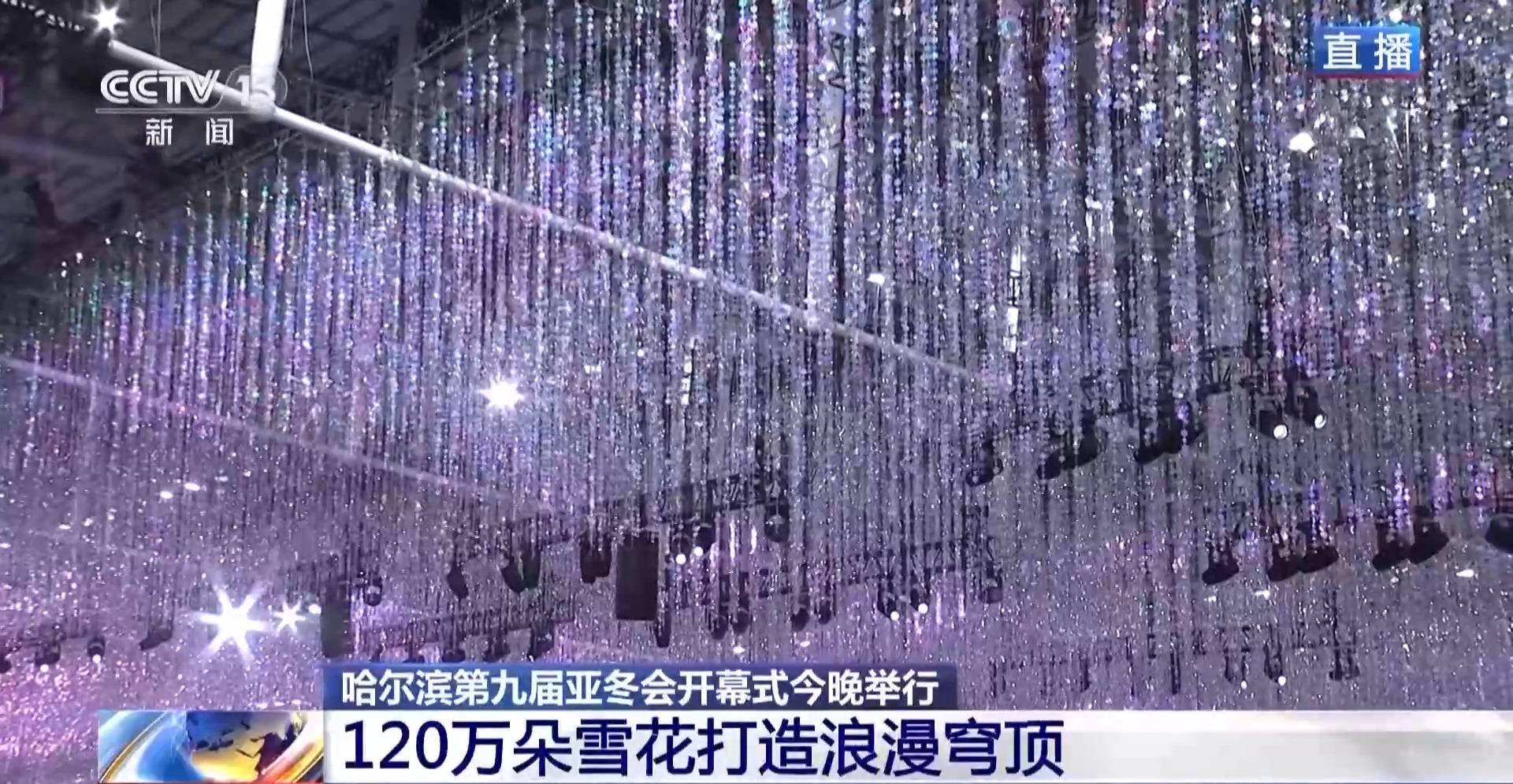 此外,場館穹頂懸掛了120萬朵發(fā)光的小雪花片,這些雪花片材質(zhì)輕盈,既不影響承重,又增添了沉浸感。觀眾一進(jìn)入場館,便能感受到濃郁的冰雪氛圍,仿佛置身于哈爾濱這座冰雪之城的會客廳。