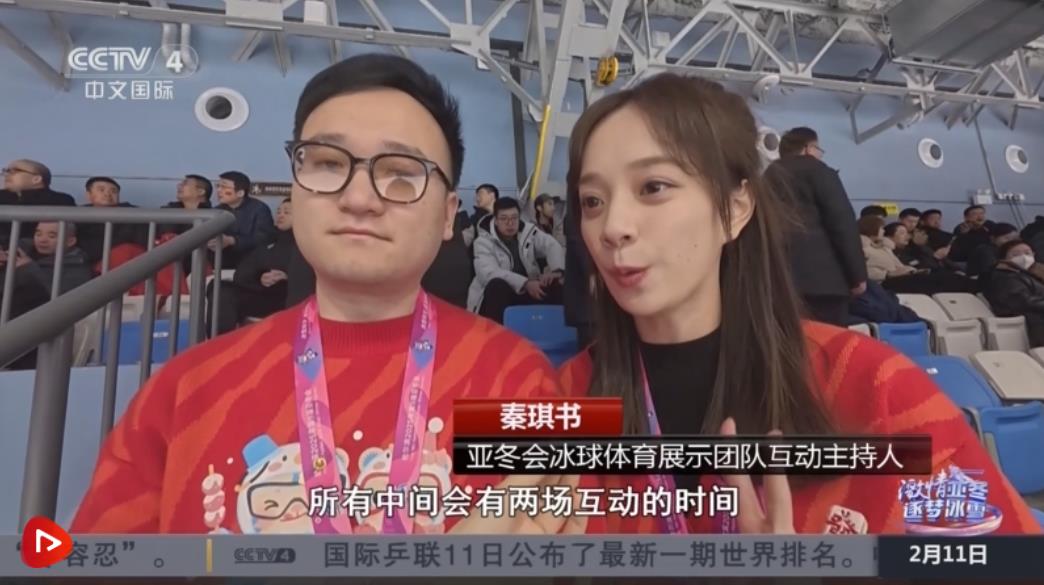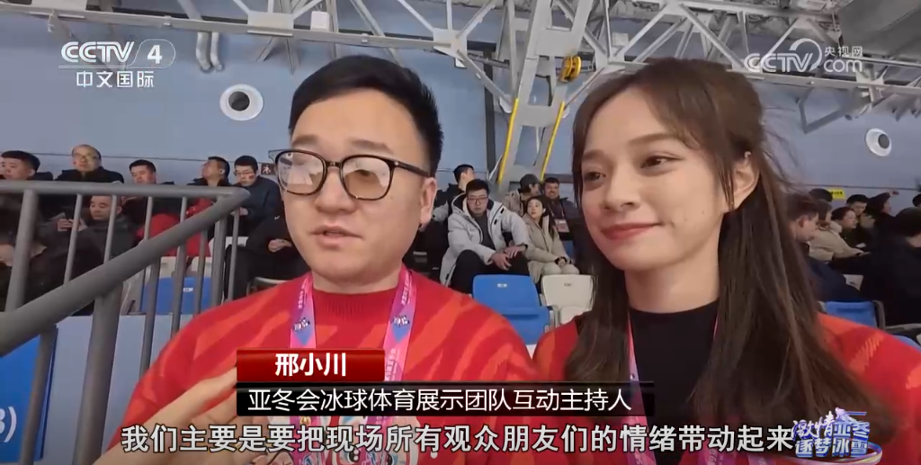亞冬會冰球體育展示團隊互動主持人邢小川介紹,他們主要是帶動所有觀眾朋友的情緒,給大家營造濃郁的現(xiàn)場氛圍,可以通過大屏幕互動,給大家?guī)砀玫挠^賽體驗。