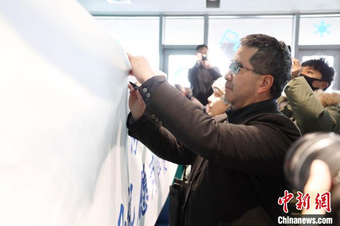 這里是2022年北京冬奧會高山滑雪項目的舉辦地。11日,清冽的寒風(fēng)中,兩岸學(xué)子在此高舉“為亞冬會加油!兩岸學(xué)子祝愿兩岸健兒勇創(chuàng)佳績!”的橫幅,為2025年哈爾濱亞洲冬季運動會遙送祝福。