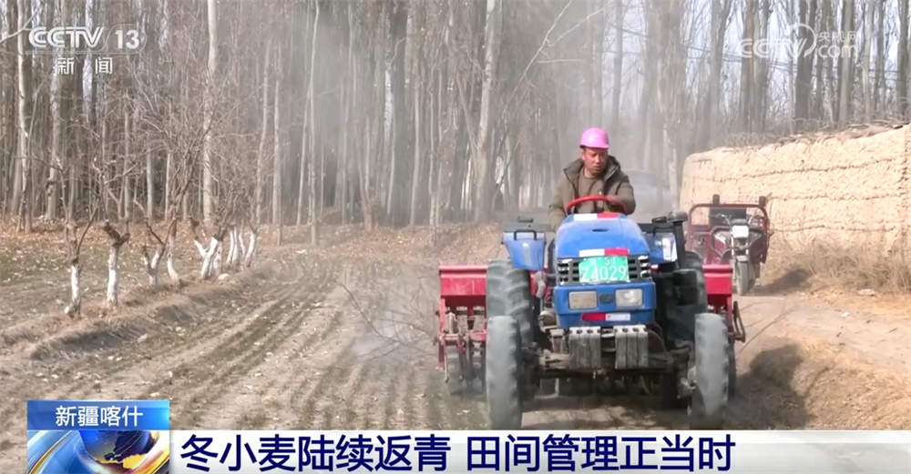 在新疆喀什阿依庫勒村,記者看到一袋袋肥料已碼放在地頭,拖拉機正在田間為冬小麥追施返青肥。為確??κ驳貐^(qū)冬小麥春季管理工作順利進行,當?shù)剞r(nóng)業(yè)部門結(jié)合當前冬小麥的長勢和天氣情況,科學指導,組織做好冬小麥病蟲草害防治、保墑防凍、追肥等工作。