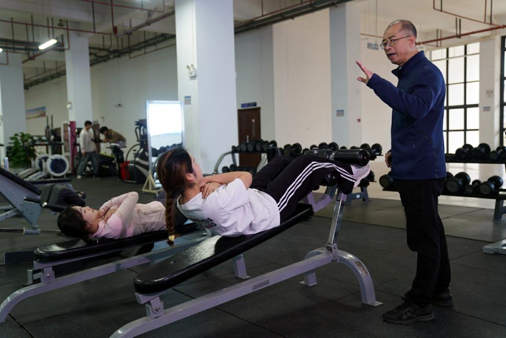 2月17日,在廣西體育高等專科學(xué)校,韋軍在指導(dǎo)學(xué)生進行體育鍛煉。新華社記者 陳露緣 攝
