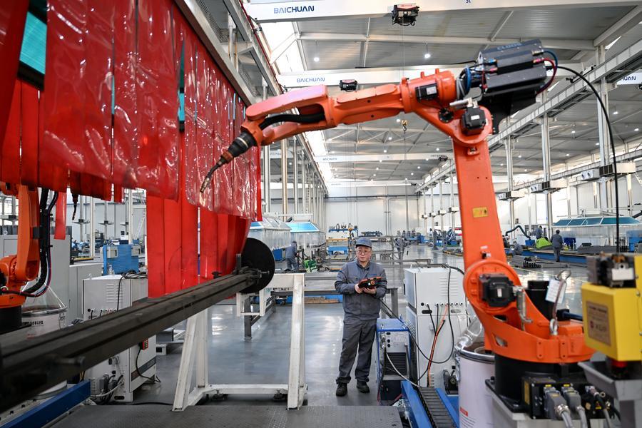 2月18日,工人在唐山百川機器人共享智能制造工廠內(nèi)測試機器人產(chǎn)品性能。新華社記者 牟宇 攝
