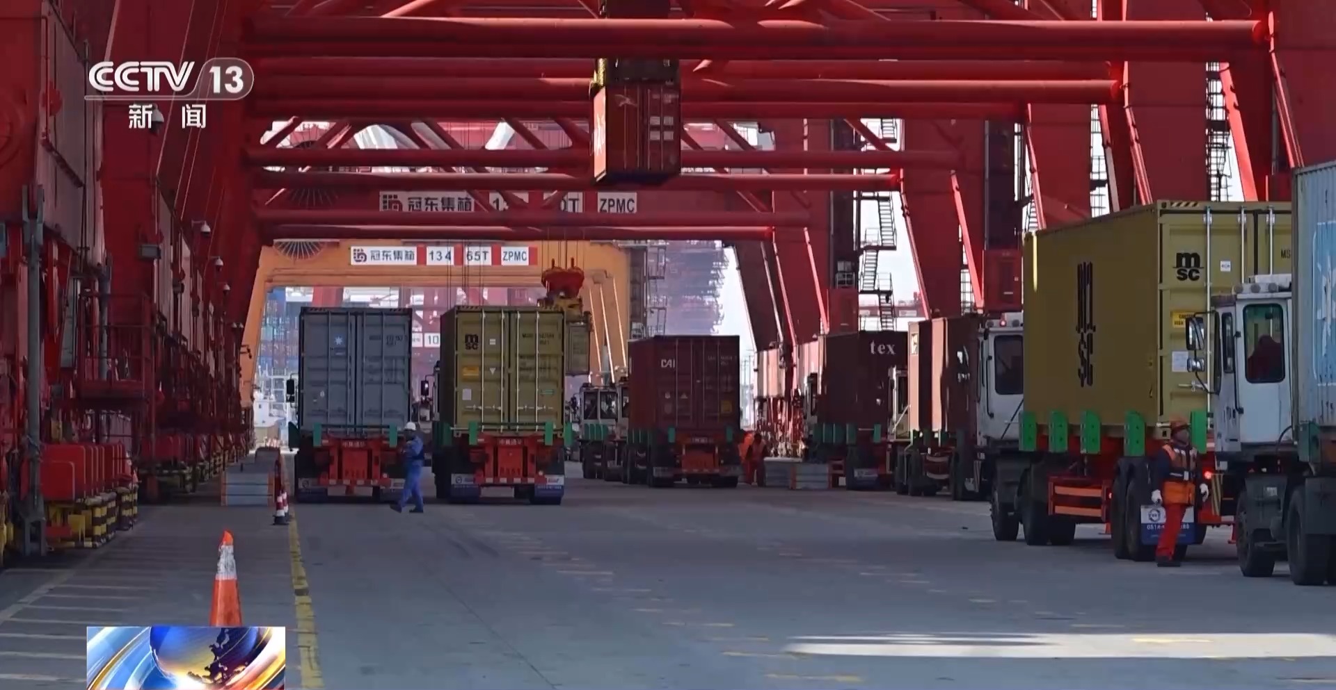 上港集團物流有限公司集卡車司機 李志強:我們每天從上海洋山港過來,應(yīng)該是六趟到七趟左右,收入肯定是比去年更可觀了。