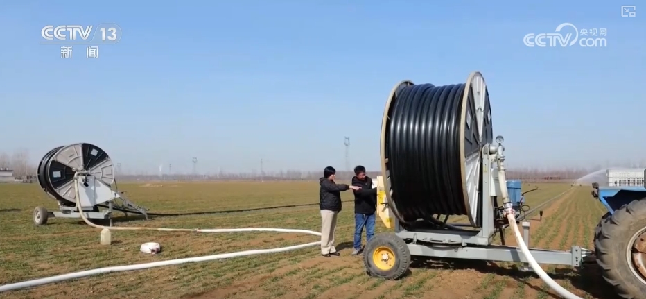 石墻鎮(zhèn)面坊村種植戶(hù)王昌松2025年種植了700畝小麥。他介紹,過(guò)去傳統(tǒng)的大水漫灌每畝地要用水80立方米?,F(xiàn)在用上了這種新型噴灌設(shè)備,每畝地用水減少到50多立方米,不僅節(jié)水,還降低了人工操作成本