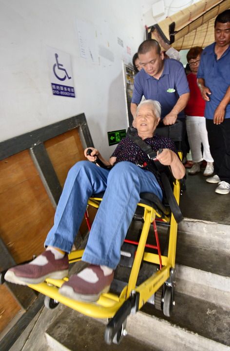 2024年7月11日,北京市朝陽區(qū)青年路社區(qū)一老舊小區(qū)居民在樓內體驗“爬樓機”。新華社記者 李欣 攝