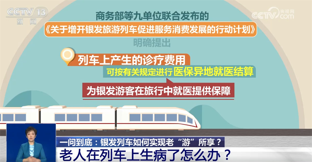 日前,商務(wù)部等九單位聯(lián)合發(fā)布的增開銀發(fā)旅游列車的行動計劃明確提出,列車上產(chǎn)生的診療費用可按有關(guān)規(guī)定進(jìn)行醫(yī)保異地就醫(yī)結(jié)算,為銀發(fā)游客在旅行中就醫(yī)提供了保障。
