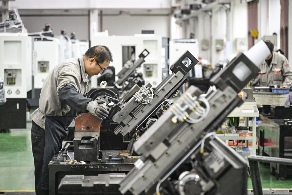 2月22日,工人在重慶宏鋼數(shù)控機(jī)床有限公司總裝車間作業(yè)。新華社記者 王全超 攝