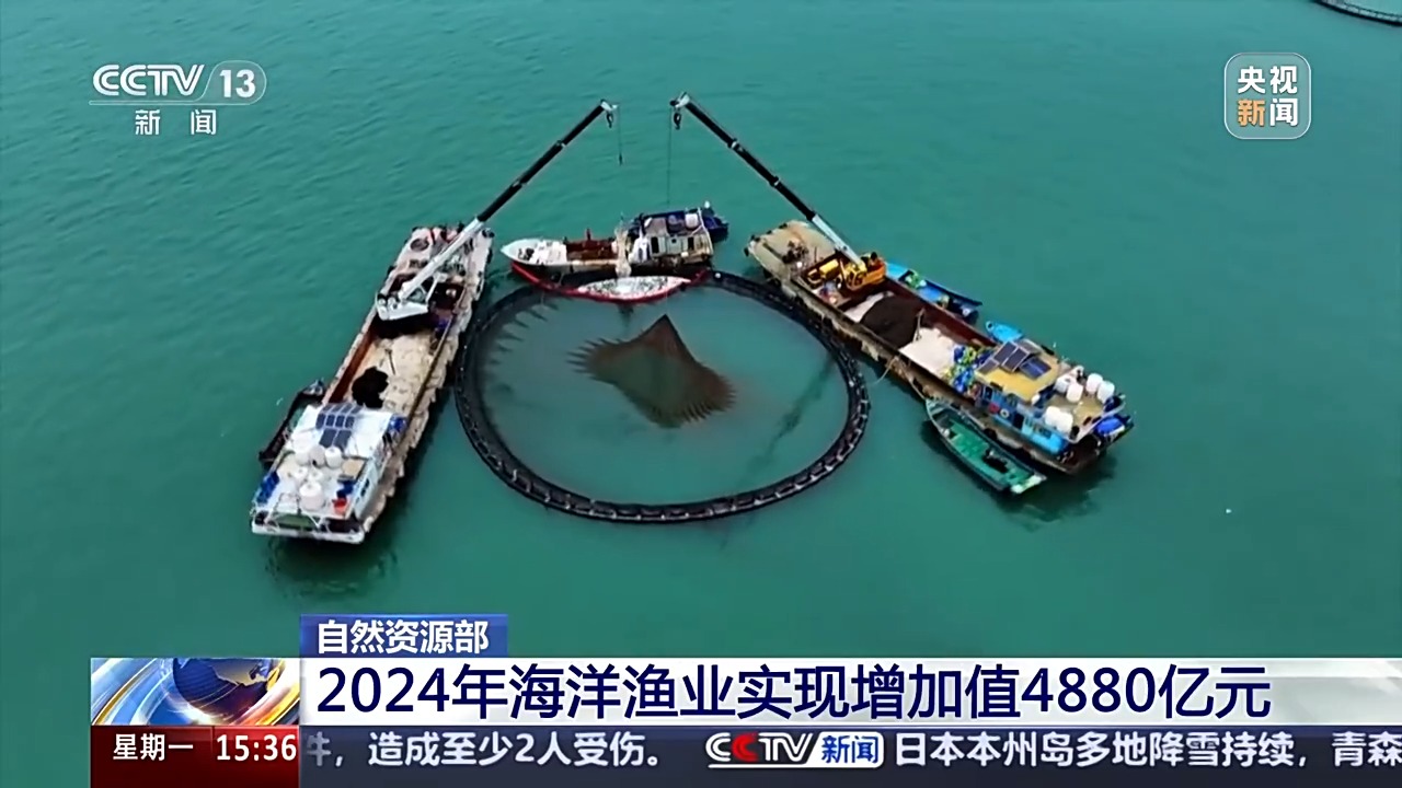 2024年,海洋水產(chǎn)品供給能力不斷提升。隨著海上養(yǎng)殖生產(chǎn)集群加快形成,智慧漁業(yè)蓬勃發(fā)展,“藍(lán)色糧倉(cāng)”建設(shè)取得積極進(jìn)展,全年海洋漁業(yè)實(shí)現(xiàn)增加值4880億元,比上年增長(zhǎng)4.0%,2024年海水資源利用規(guī)模不斷增加,全國(guó)海水淡化產(chǎn)量超4億噸,工業(yè)冷卻海水用量超1800億噸。