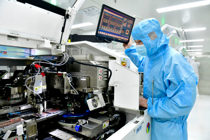 2025年2月13日,山東立國芯微電子有限公司工作人員在芯片生產(chǎn)線上工作。新華社記者 郭緒雷 攝