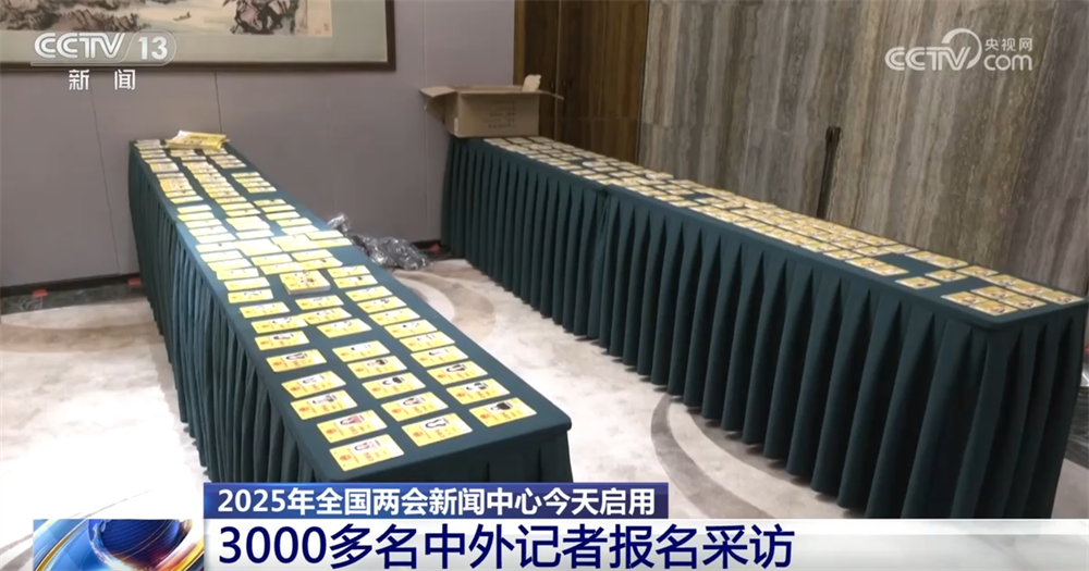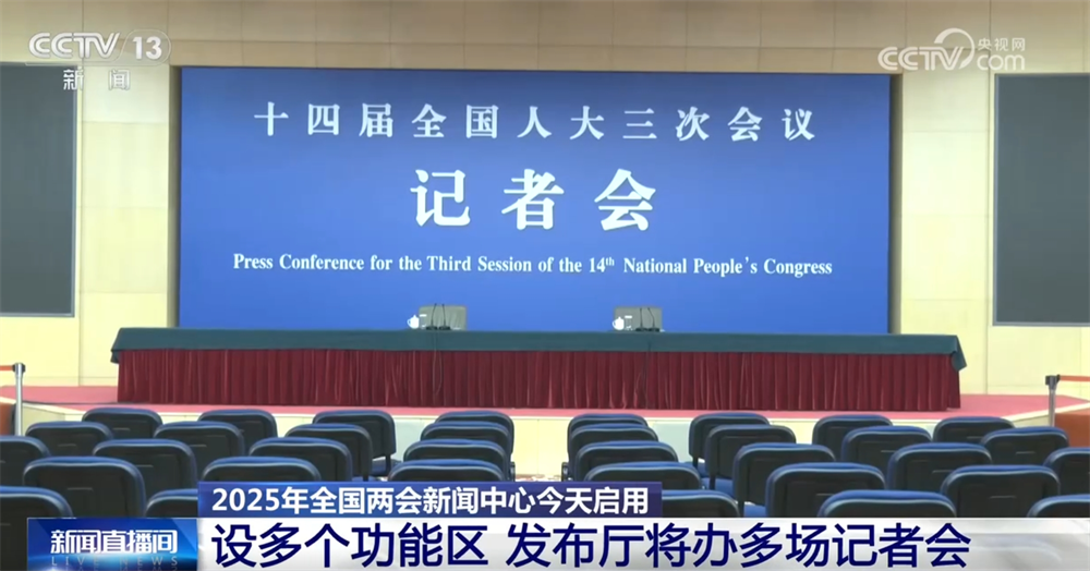 與往年相同,今年全國兩會(huì)新聞中心設(shè)置了多個(gè)功能區(qū),其中,新聞發(fā)布廳和采訪室等已經(jīng)布置完畢。
