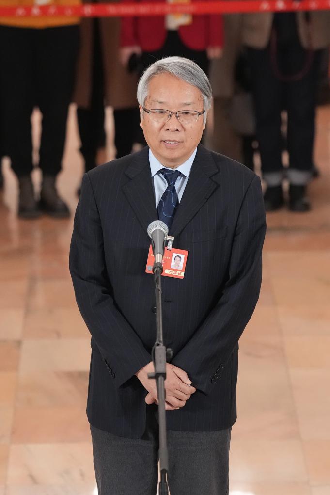 3月10日,全國政協(xié)十四屆三次會(huì)議第三場(chǎng)“委員通道”集體采訪活動(dòng)在北京人民大會(huì)堂舉行。這是全國政協(xié)委員何潤生接受媒體采訪。新華社記者 金良快 攝