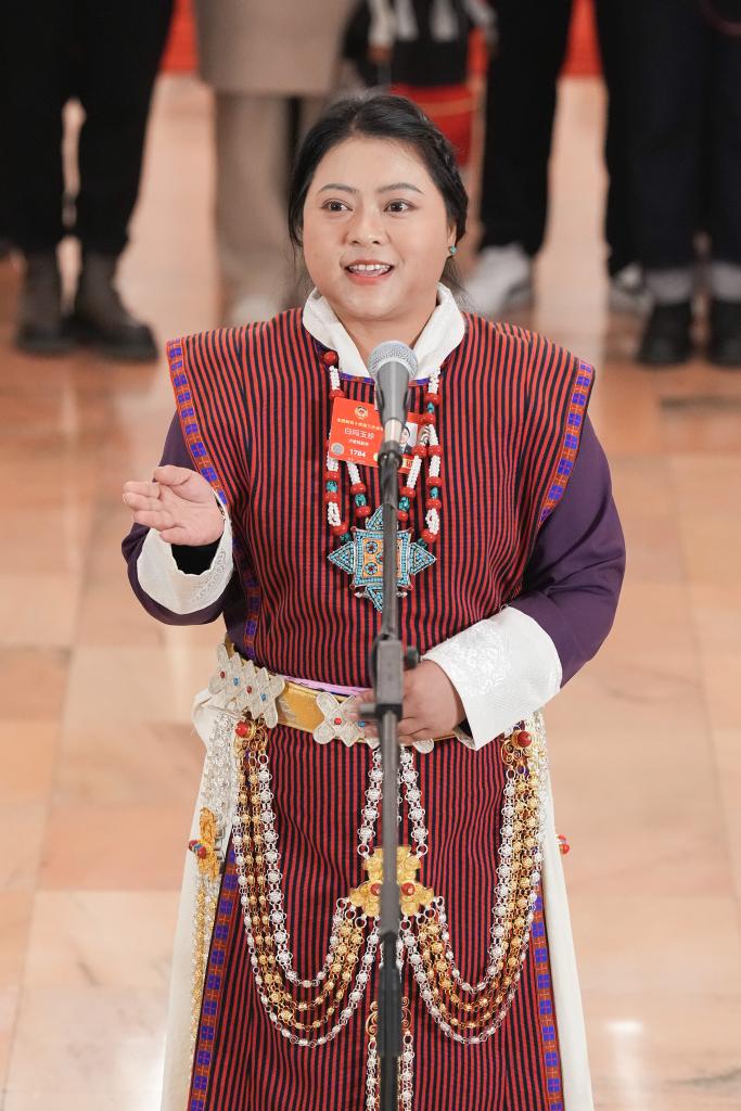 3月10日,全國政協(xié)十四屆三次會(huì)議第三場(chǎng)“委員通道”集體采訪活動(dòng)在北京人民大會(huì)堂舉行。這是全國政協(xié)委員白瑪玉珍接受媒體采訪。新華社記者 才揚(yáng) 攝
