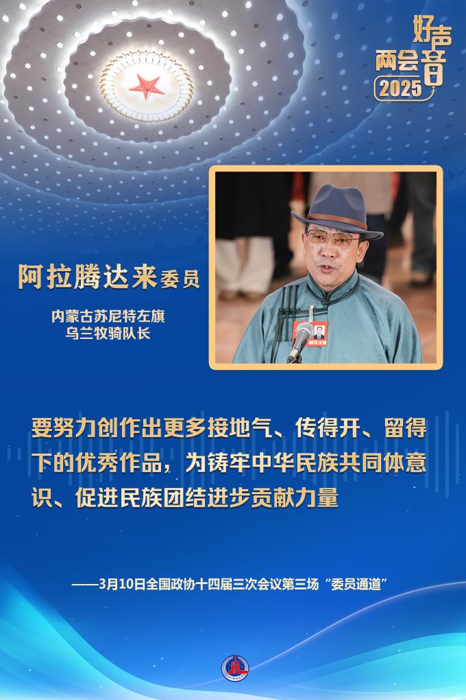 “在內(nèi)蒙古大地上,活躍著75支烏蘭牧騎隊(duì)伍,有3000多名隊(duì)員,每年開展演出1萬多場(chǎng)?!卑⒗v達(dá)來委員說,要努力創(chuàng)作出更多接地氣、傳得開、留得下的優(yōu)秀作品,為鑄牢中華民族共同體意識(shí)、促進(jìn)民族團(tuán)結(jié)進(jìn)步貢獻(xiàn)力量。