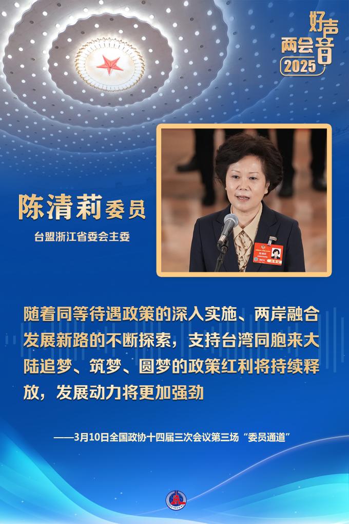 臺(tái)盟浙江省委會(huì)主委陳清莉委員分享了臺(tái)灣同胞在浙江生活、創(chuàng)業(yè)的故事。她表示,隨著同等待遇政策的深入實(shí)施、兩岸融合發(fā)展新路的不斷探索,支持臺(tái)灣同胞來大陸追夢(mèng)、筑夢(mèng)、圓夢(mèng)的政策紅利將持續(xù)釋放,發(fā)展動(dòng)力將更加強(qiáng)勁。