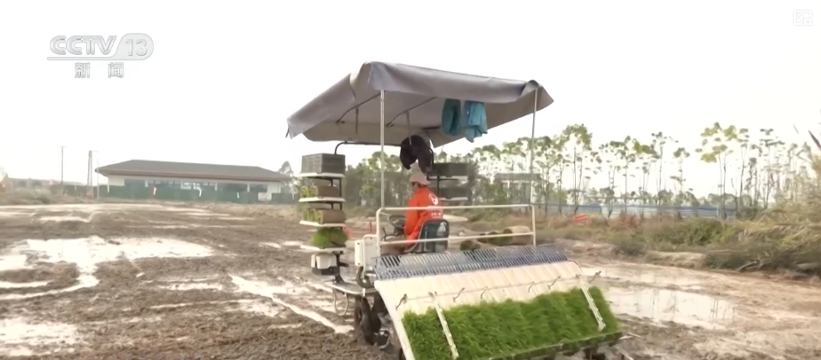 在廣東佛山,春播春耕作業(yè)正在進行。2025年,種植戶利用無人駕駛插秧機等設(shè)備,高效完成早稻插秧播種。